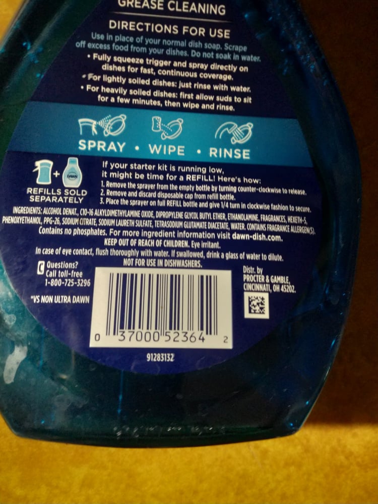 Spray it on, no water, alcohol. Convenience. But you have to rinse.HeavyG said:What's the advantage of this stuff over regular Dawn (which is pretty good stuff)?