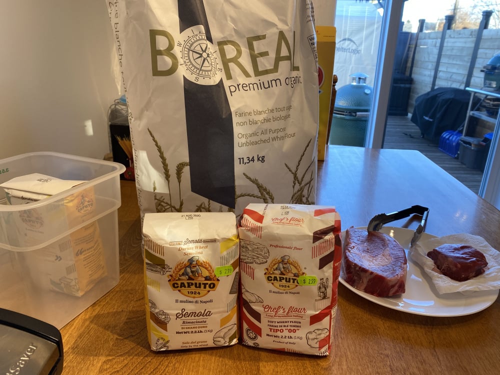 @GrateEggspectations Bottom right is the Antimo Caputo « red » bag 00 flour. If you can get your hands on the semolina, it is pretty good too to make fresh pasta. Costco in Gatineau (saturday) had the organic 11.3 KG bag of unbleached AP flour, it is the same as « La milanaise » sold in grocery stores for less than 1/2 the price.