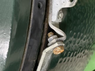 It’s at an angle and the back end of bolt will hit the band and can self tighten over time. I took mine out on both sides and hit with a grinder to shorten a bit. And I now oil the joints a couple times a year. Trust me, it’s normally just an issue on one side and it doesn’t seem possible that 1 little bolt can lock up the bands like it does. Hope this helps
