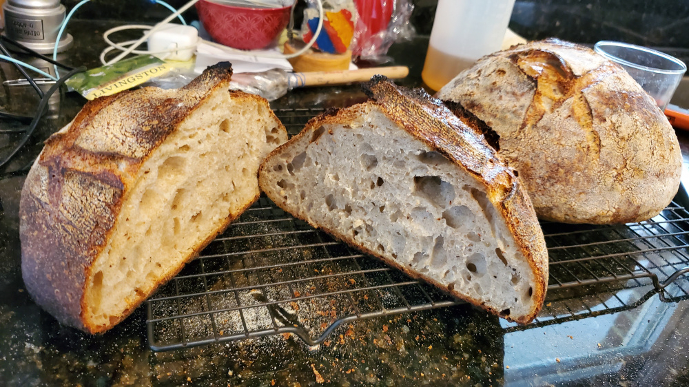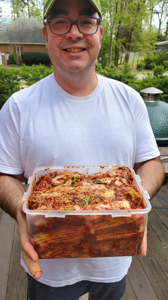 I am guessing many of us are using this time to hone our cooking skills and even learn some new ones. I decided to play home-school science teacher and my 12 y.o. daughter and I made a Sourdough starter and bread. Also cooked: brisket flat, spatch chicken, ribeye, cured and smoked my own bacon, NY Style beagles and I made a batch of kimchi. Pictorial below.