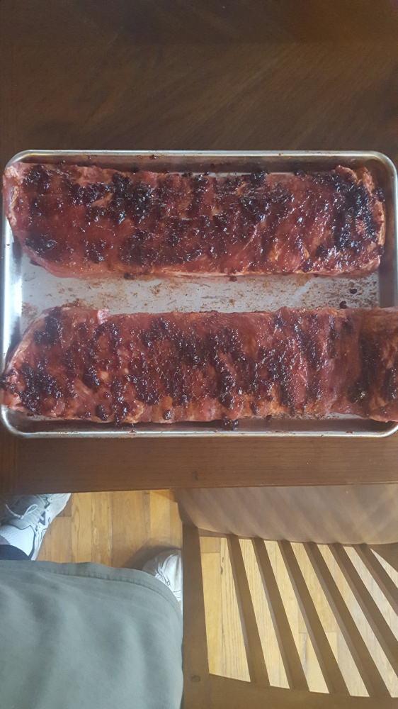 Haven't posted in awhile so figured I would post last night's dinner. I was actually looking for peach preserves at home in order to do @YukonRon method but did not have any. Called an audible and used Elderberry jelly. Wife does not usually like ribs but she liked these. Only rubbed them with the jelly before cooking did not use any finishing sauce. Pictures below. Thanks for looking.