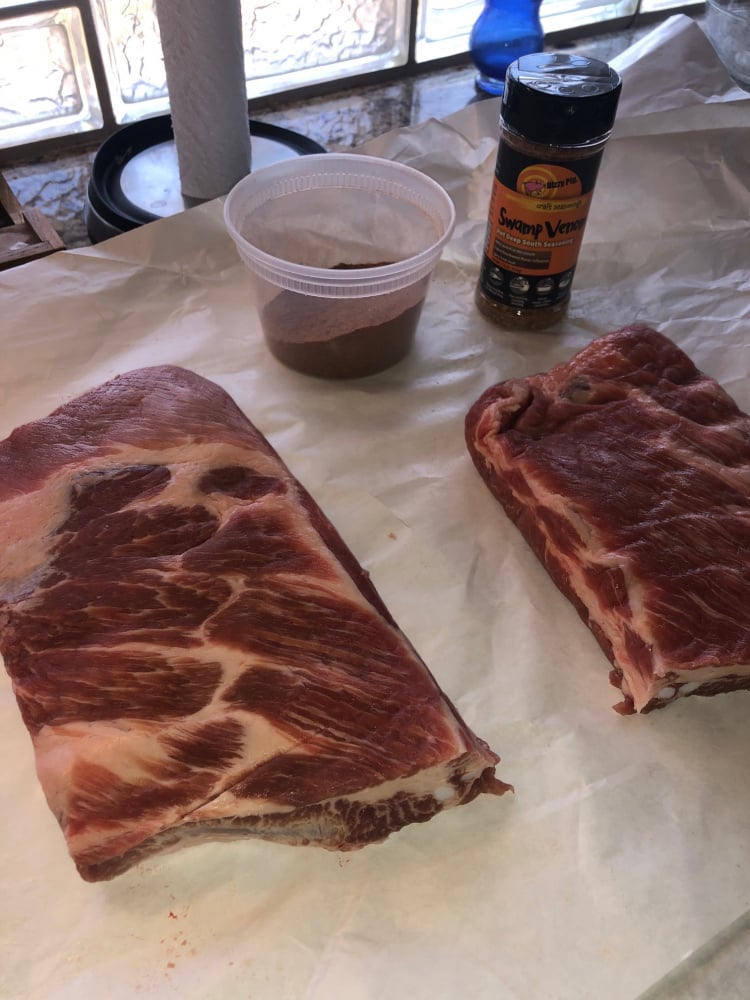 Half JIC's Dukie Rub and half @pgprescott's Swamp/Honey Hog suggestion.