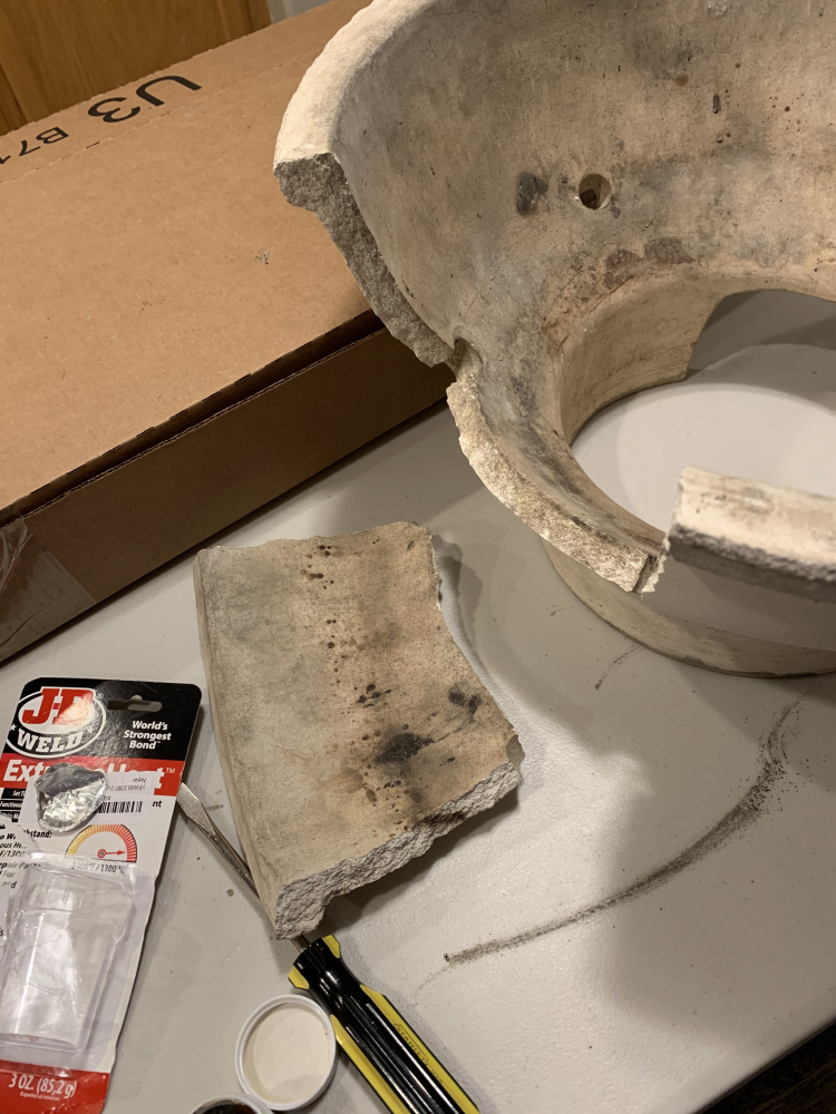 Firebox was in pieces, the base just had cracks. Just an experiment to see if it works. The base was a warranty cast off from my brother in law. I made a Frankenstein egg from various old parts. It’s in a table I got really cheap at my moms house ($150 with a large egg in it). Still works.