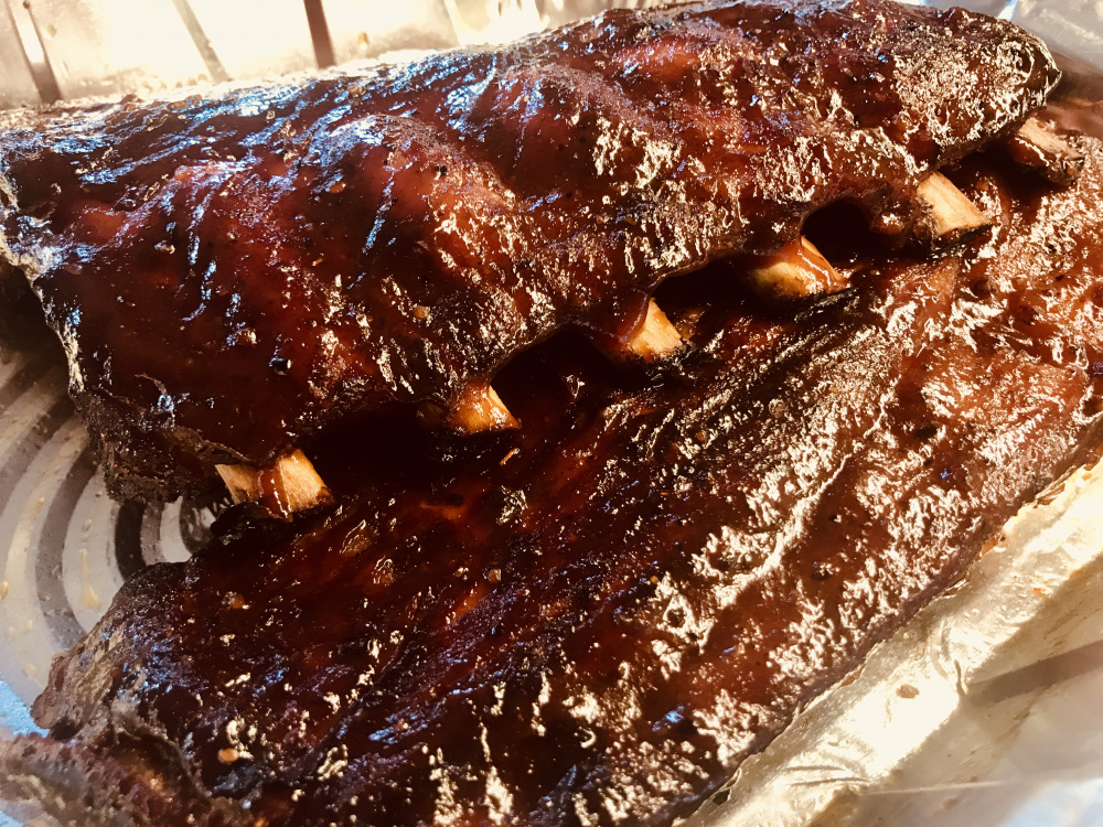 Baby Back Ribs are 3 hours in of 5 now for my weekend finale!  Time to tuck them into their tin foil home with some butter, brown sugar and beer for the next 60-90 minutes!