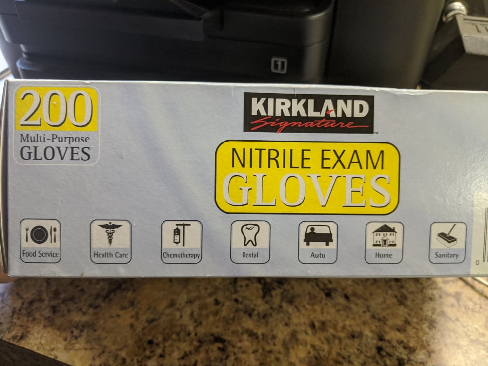 I use the powder free nitrile gloves from Costco. They used to be in the aluminum foil, paper goods section, but they moved them into the pharmacy area at my local Costco.