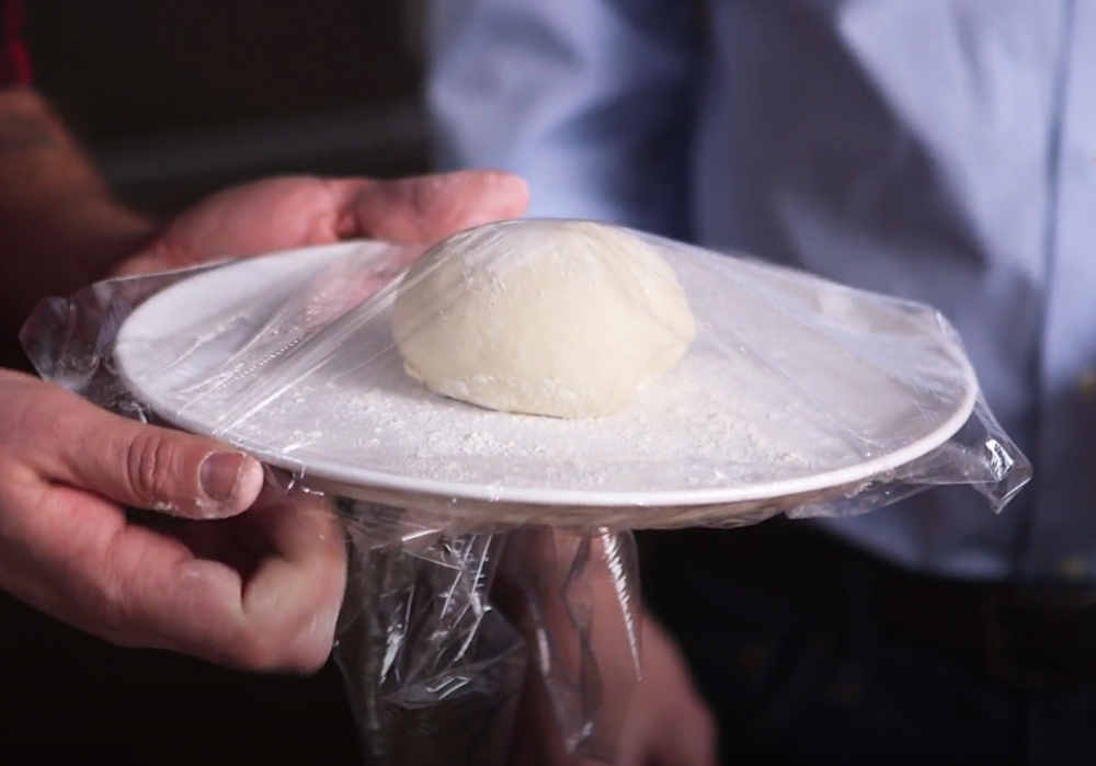 In the recipe they have you place the dough on a plate with plastic wrap over to rest in the fridge for 24 hours.