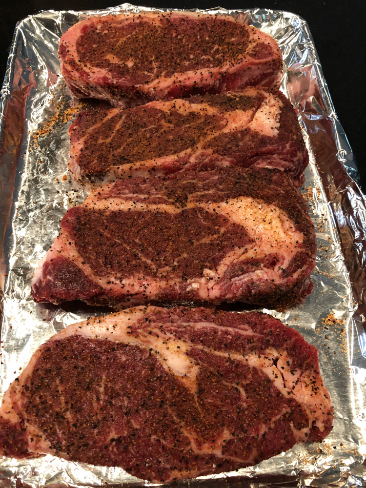 Bought a few Costco prime ribeyes and needed another hunk of meat... found a wagyu strip steak at the local grocer. Rubbed with Meatchurch Holy Cow and thought I’d compare results.