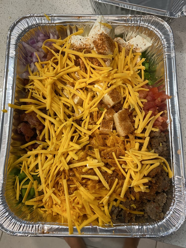 2 bags of shredded cheese. I think I did one Mexican/fiesta style and one just an extra sharp cheddar.