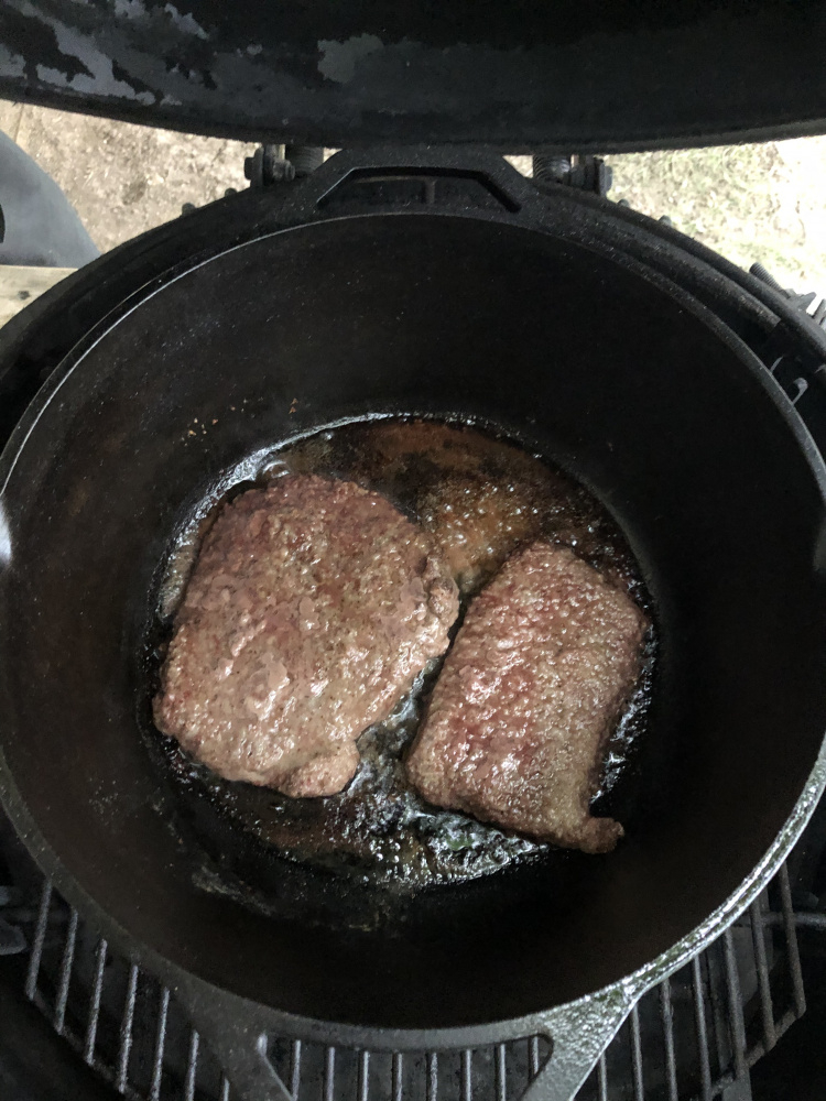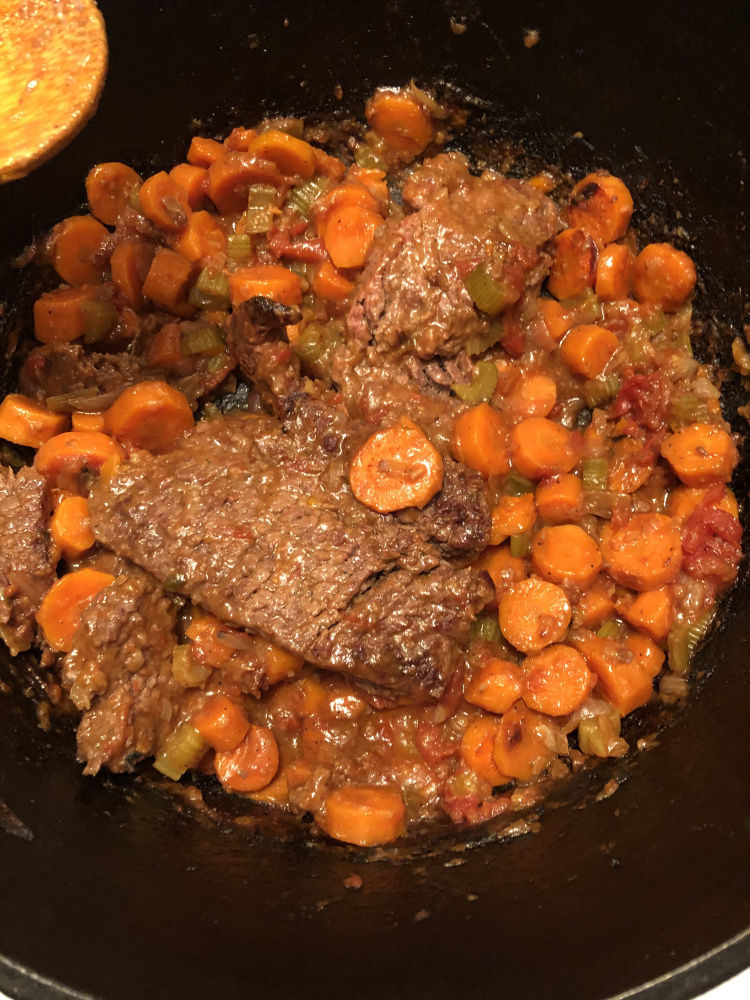 Pretty easy, tenderized round steak browned in the pan with a little oil and flour dredge. Then comes the stewed tomatoes, onion, carrots, celery, Worcestershire and garlic. Cook about 2 hours at 400 checking to see if more liquid is needed. We like ours on-top of mashed potatoes. Enjoy the rest of the weekend!!