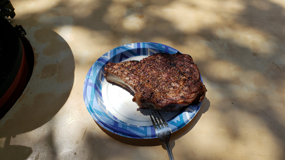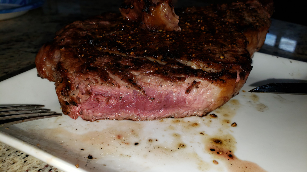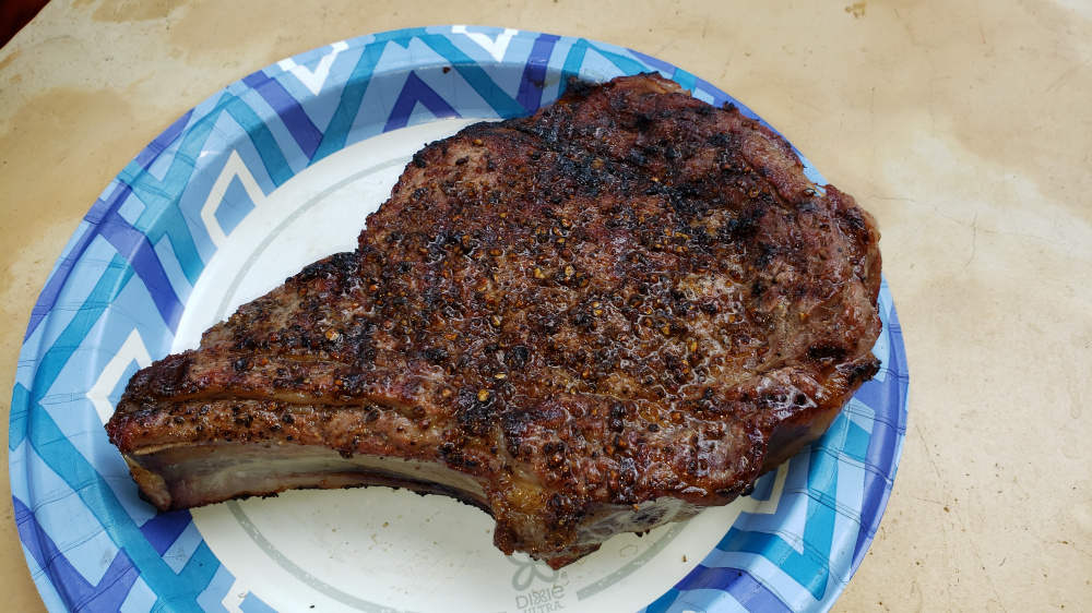Grass fed seasoned with smoked sea salt and coarse pepper grind. Seared over 800 degrees.