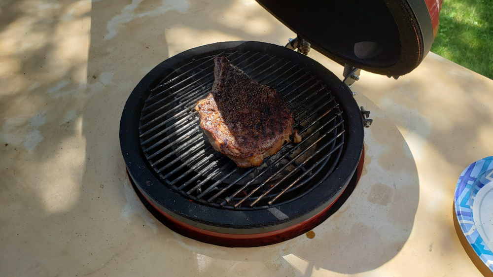 I seared each side for about 1.5 min. I then inserted the indirect stone and could each side for about 3 min.