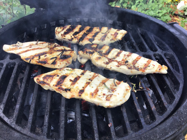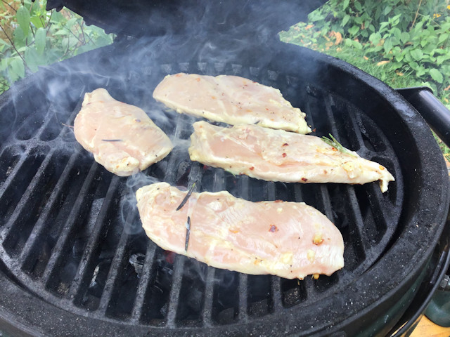 Marinated chicken cutlets in: Olive oil, salt, pepper, red peppers, garlic and 1/2 lemon juice, Rosemary for about 15-20 while I started up the Minimax.