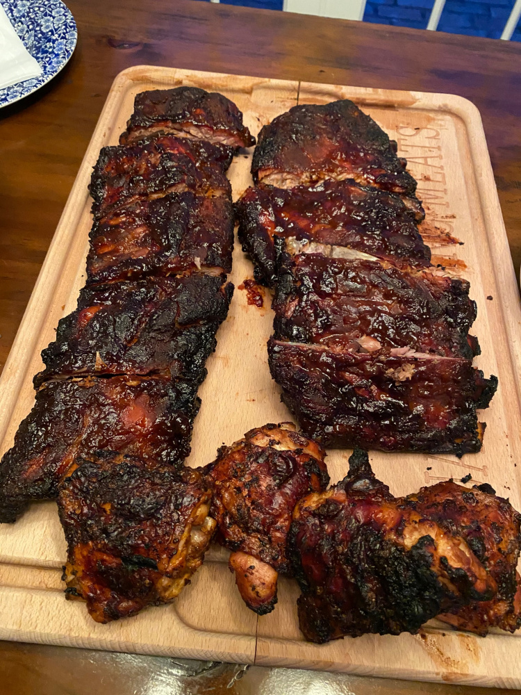 Got a little day off inspiration from the forum.  Made peach preserve ribs and some thighs in chipolte.  Thanks to YukonRon and Photoegg.  Good eats!