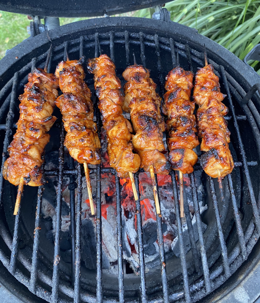 Skewers on the small. No idea what the temp was cause I was in grillin mode. This was just after a brushing of the sauce.