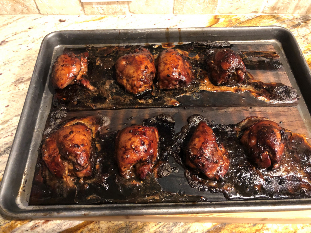Cedar Planked Chicken Thighs with a Soy Ginger glaze