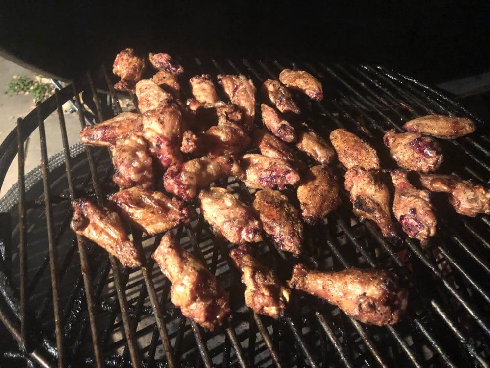 Late to get started in dinner last night so I tried to move things along quickly. I setup indirect with plate on the woo and wings as high as could be on the top of the AR. 500F indirect and flipped once. When I flipped, I swapped some of the paler ones from the middle to the outside. I’ll cook them this way more, better uniformity on the skin and more moist. They were spread out single layer when I was cooking them, just piled up to pull them off.