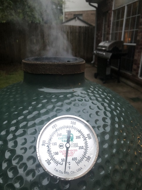 15 Min holding steady at a low temp, restricted bottom vent almost fully but still generating plenty of smoke.
