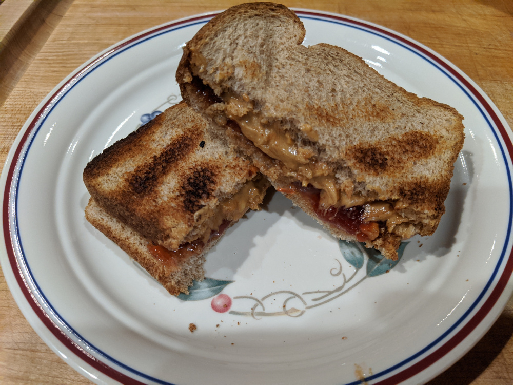 Meal #2: Late night snack. One of my favorite sandwiches as a kid was a toasted PB&J. I decided to toast one on the Egg.