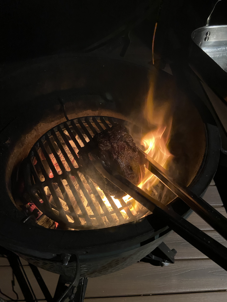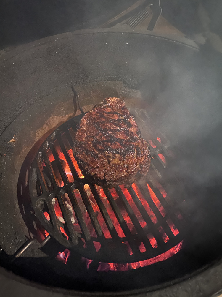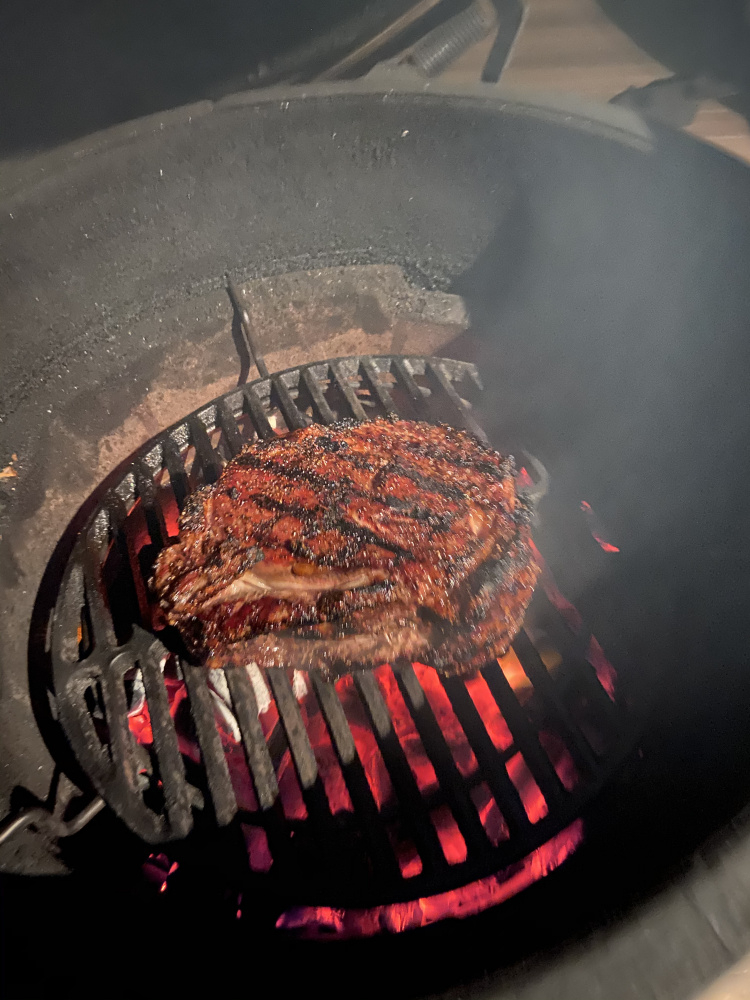 I'll be coming in with a prime rib-eye roast. Beautiful evening in Maryland - out on the deck sipping Michter's...this stuff is good!Maryland, 1 LBGE