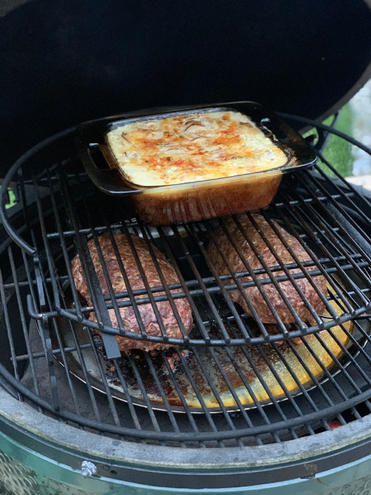 Tonight we made Smoked Meat Loaf, Scalloped Potatoes and Apple Pie all on the BGE