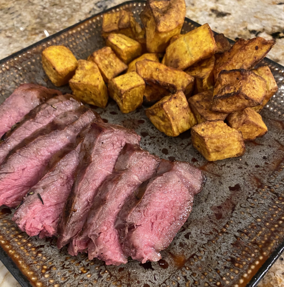 Generous coating of salt and pepper and a lighter sprinkle of garlic and onion powder. Started lower and slower at felt level followed by heavy searing on all sides on the lowered spider.