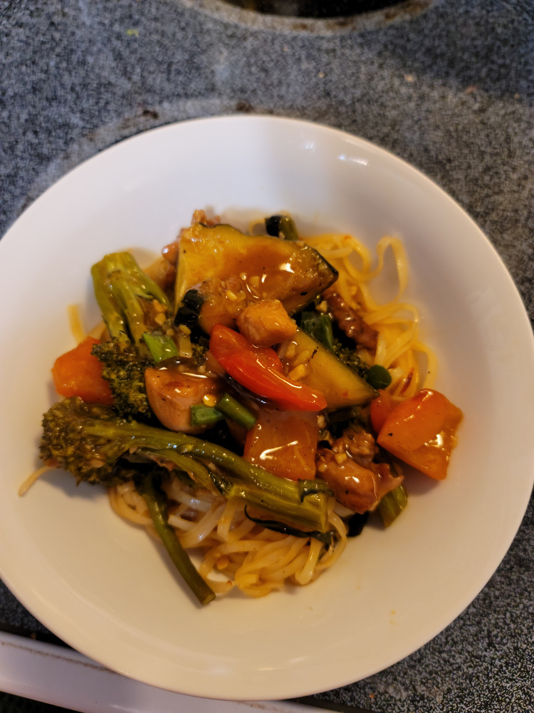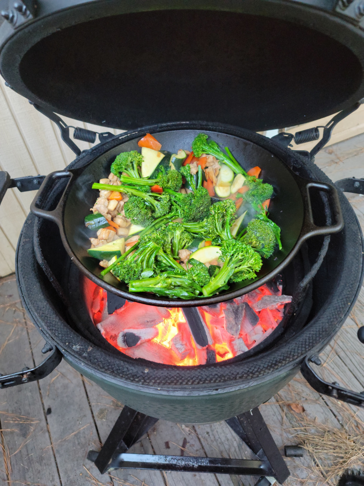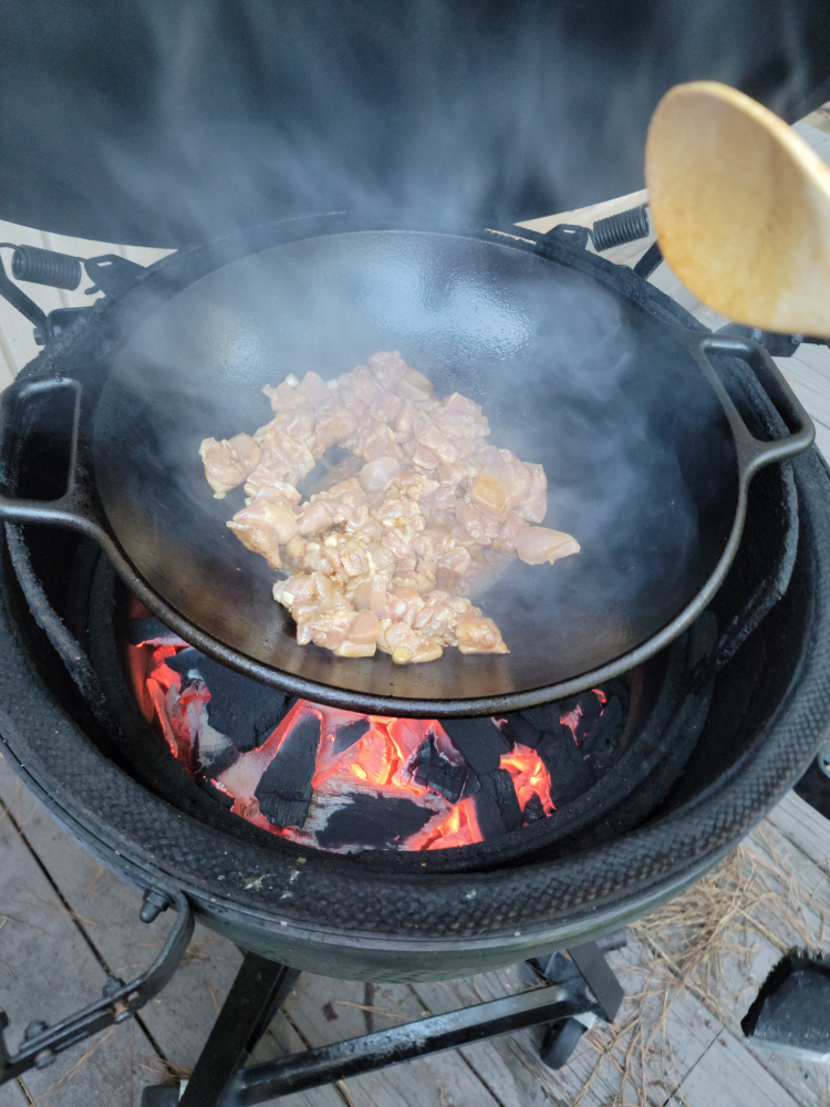 Used the wok again for a good cause. Stir fry. Didn't get many pictures because it went so fast. Around 550 on the wok this time, but I overloaded it. Still came out tasty.