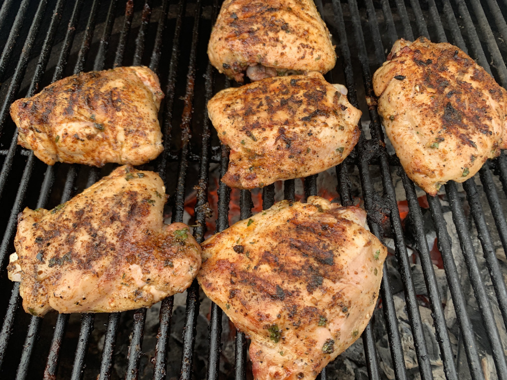 Malcolm Reed posted a chicken taco recipe the other day and tried it tonight. Chicken thighs marinated in lime juice, onion, cilantro, etc. with homemade pico de gallo, and a lime cilantro sauce. Made from scratch brownie for desert. It was excellent. Probably doesn't count because it was grilled on the primo xl because I was too lazy to get one of my green eggs out, but wanted to post anyway.