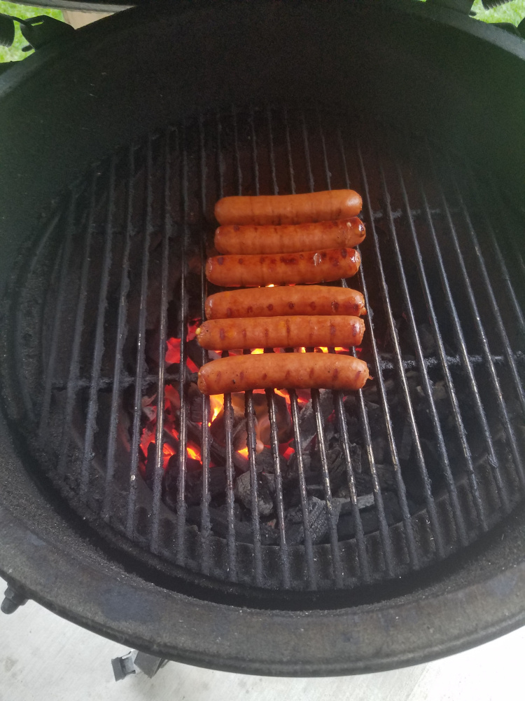 Never would've posted this if you guys weren't dropping cash for a good cause. Simple cheddar stuffed smoked sausage.
