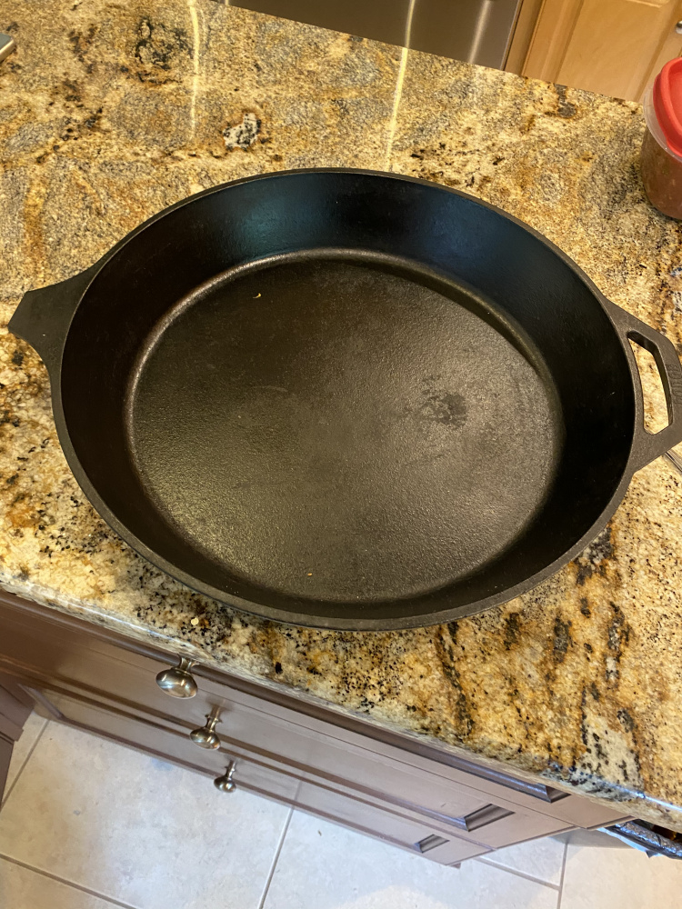 I bought a 15” skillet and cut the handle off to use in my large.https://www.amazon.com/Lodge-L14SK3-Skillet-Cast-Black/dp/B00063RWUM/ref=sr_1_2?crid=2S4ZZLGR69P1I&dchild=1&keywords=15+lodge+cast+iron+skillet&qid=1601843023&sprefix=15%E2%80%9D+lodge+%2Caps%2C178&sr=8-2