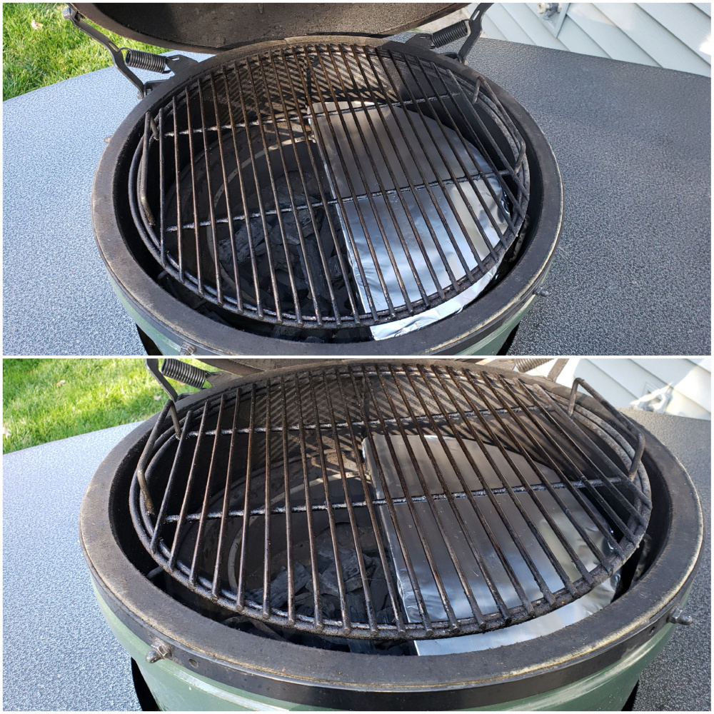 Tried a 2 zone setup using the eggspander and half stone. I wrapped the stone in heavy duty aluminum foil, placed it on the lower level and grate level with gasket.