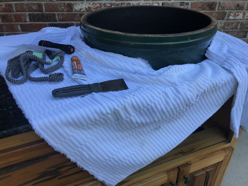 As part of my table rebuild/refurb I am also giving the BGE a rebuild with a new band assy and Rutland gasket. It's a beautiful day in South La for a Rutland install. All the necessary tools are there; the most important part that made the job easy peasy, the detailed instructions RRP has put together. Thanks @RRP