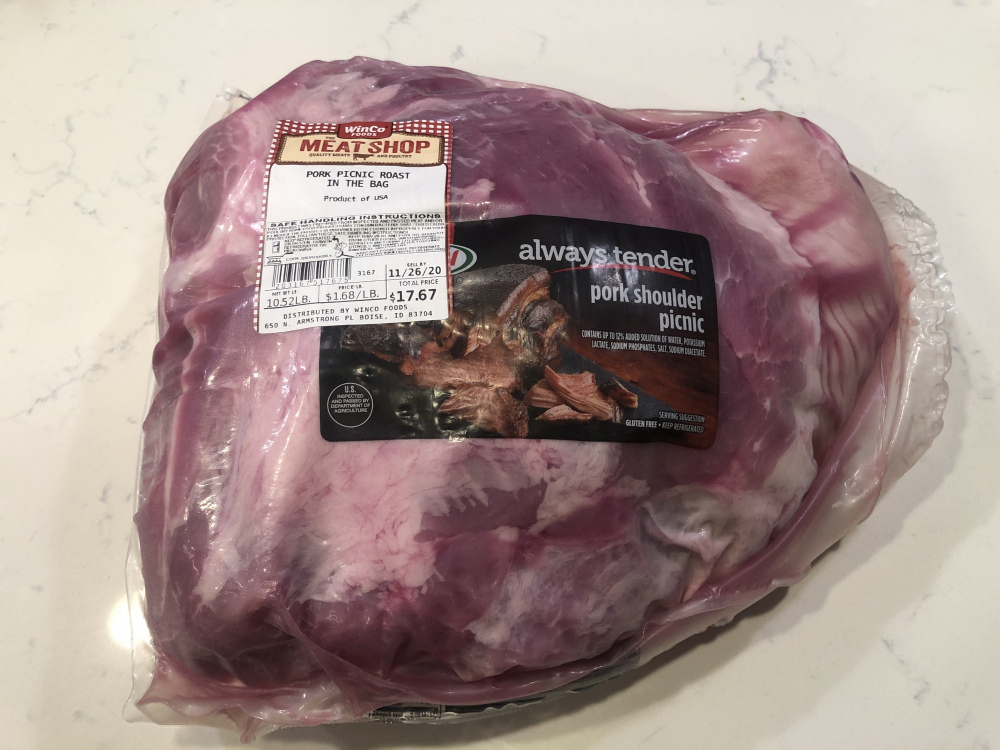 Label on the pork shoulder says its "ALWAYS TENDER".