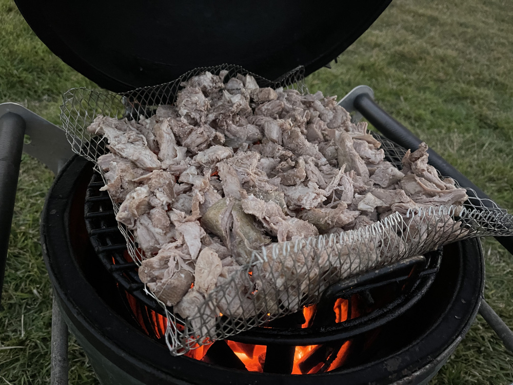 Camping with the small BGE. Pre cooked the meat sous vide using the Serious Eats recipe. Good food, sorry for bad photos.