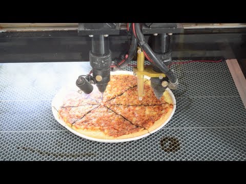 I know some of the frozen pizza manufacturers use a water jet to cut their pies, less power and you don't burn the edges.HeavyG said: