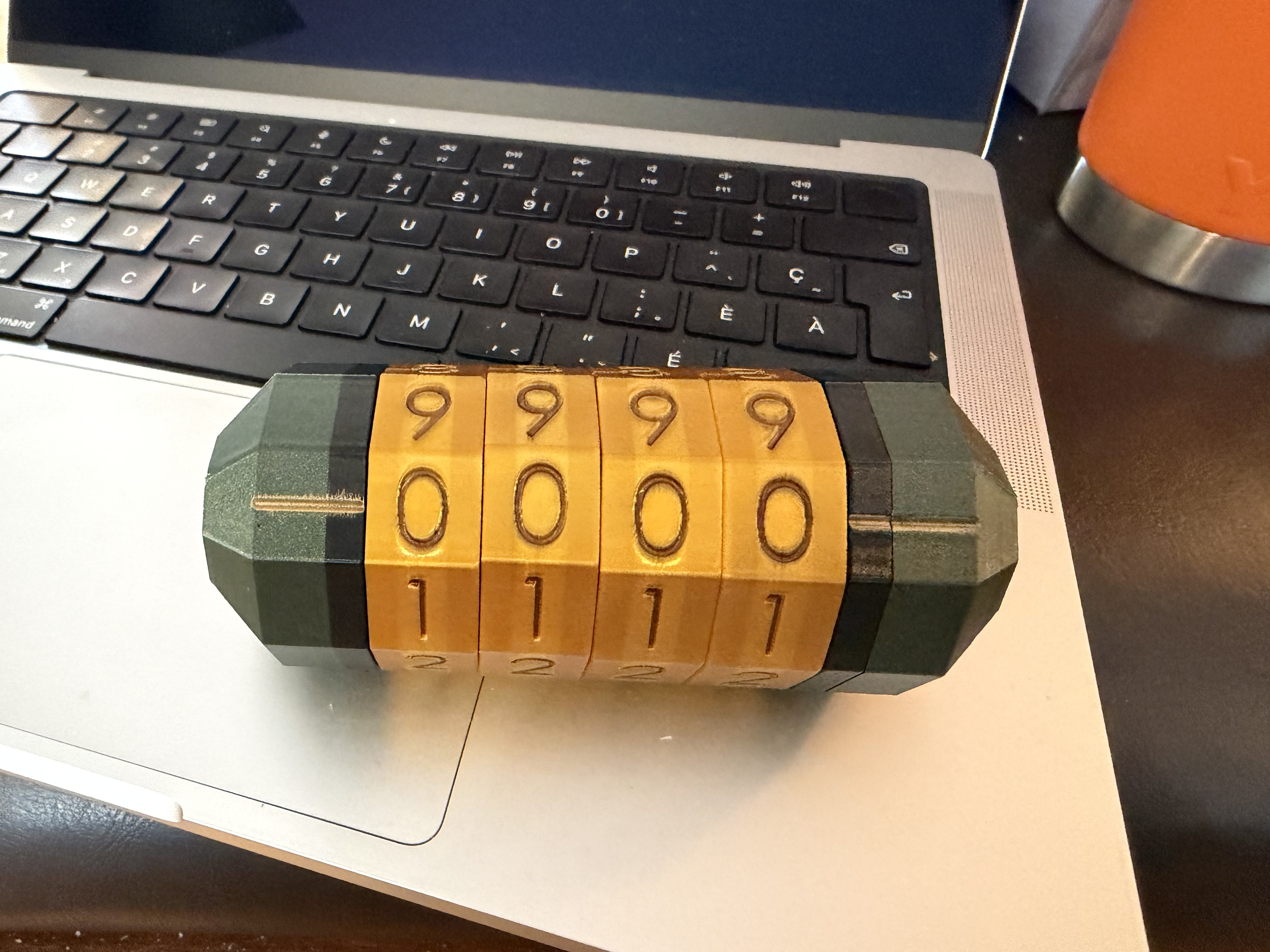 Cryptex to gift money to my nephew for Christmas, the digits of the combination code were answers to riddles.