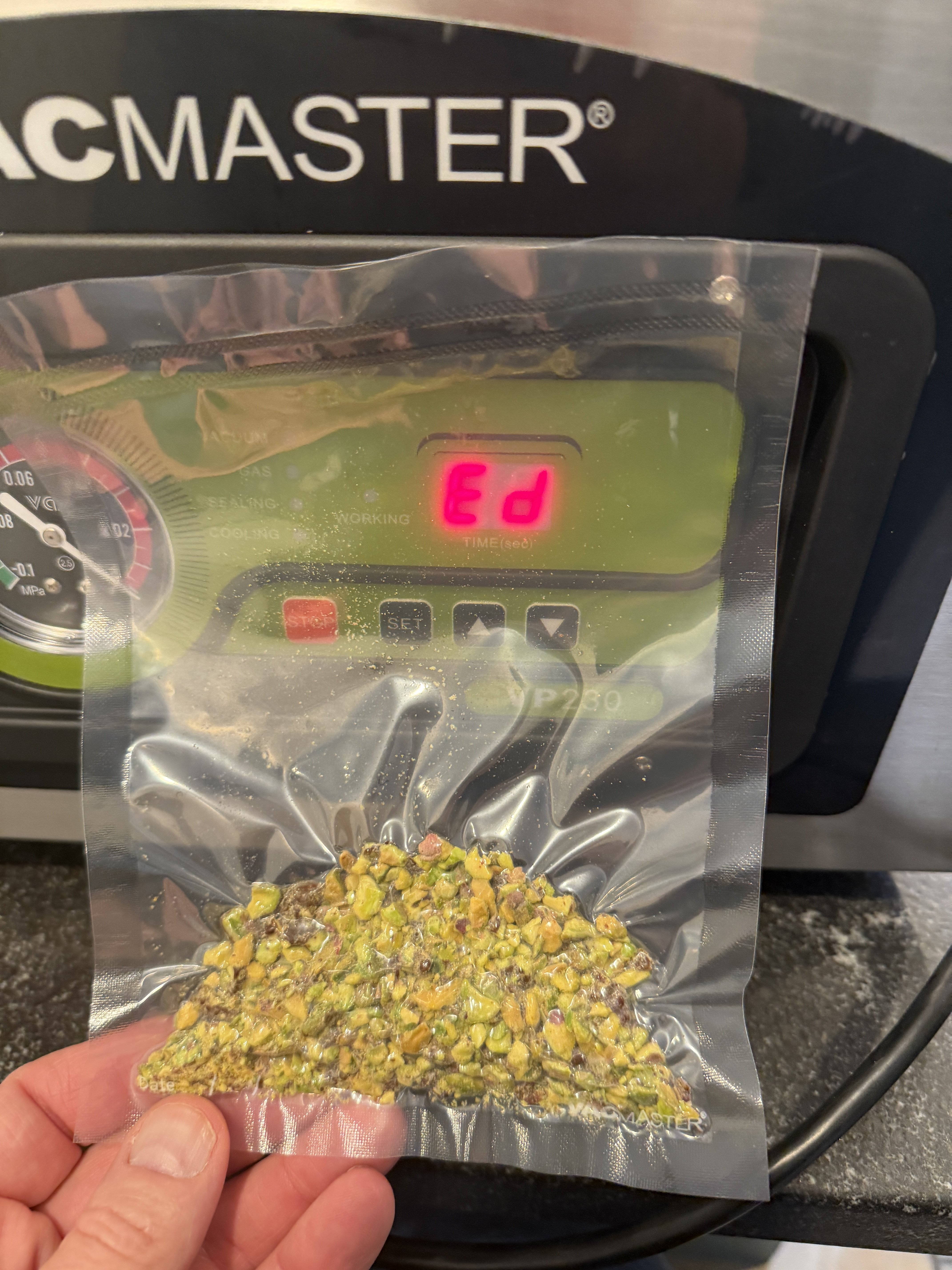 The VP230 just showed up so I gave it a test run with some chopped pistachios. Holy crap - I should've bought one of these long ago instead of being continually frustrated with the FoodSaver.
