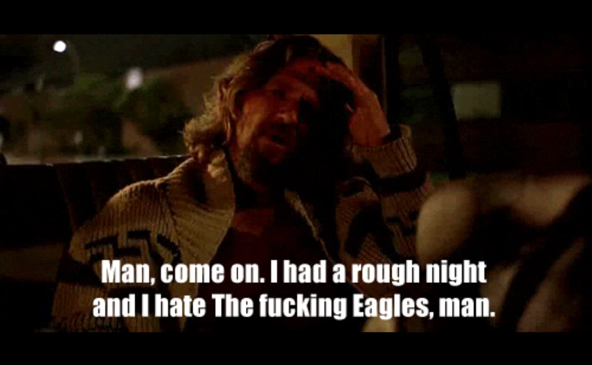 "Turn up the Eagles, the neighbors are listenin'..."   Let's see if anyone gets that reference.   B)