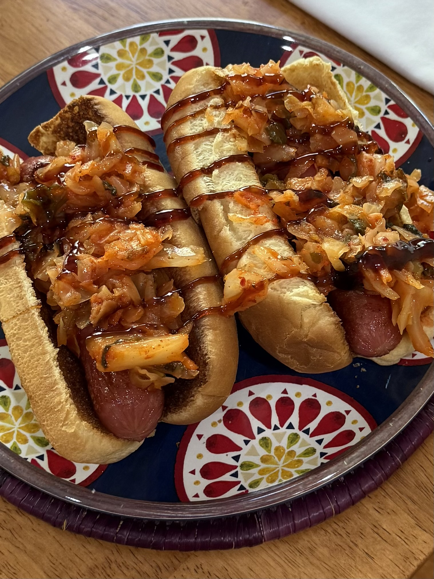 Our lunch was spicy kimchi hotdogs with a soy glaze. That is why they call it fishing not catching 🤣, DH caught a nice legal bass today but we tossed it back because it was not enough for a meal.