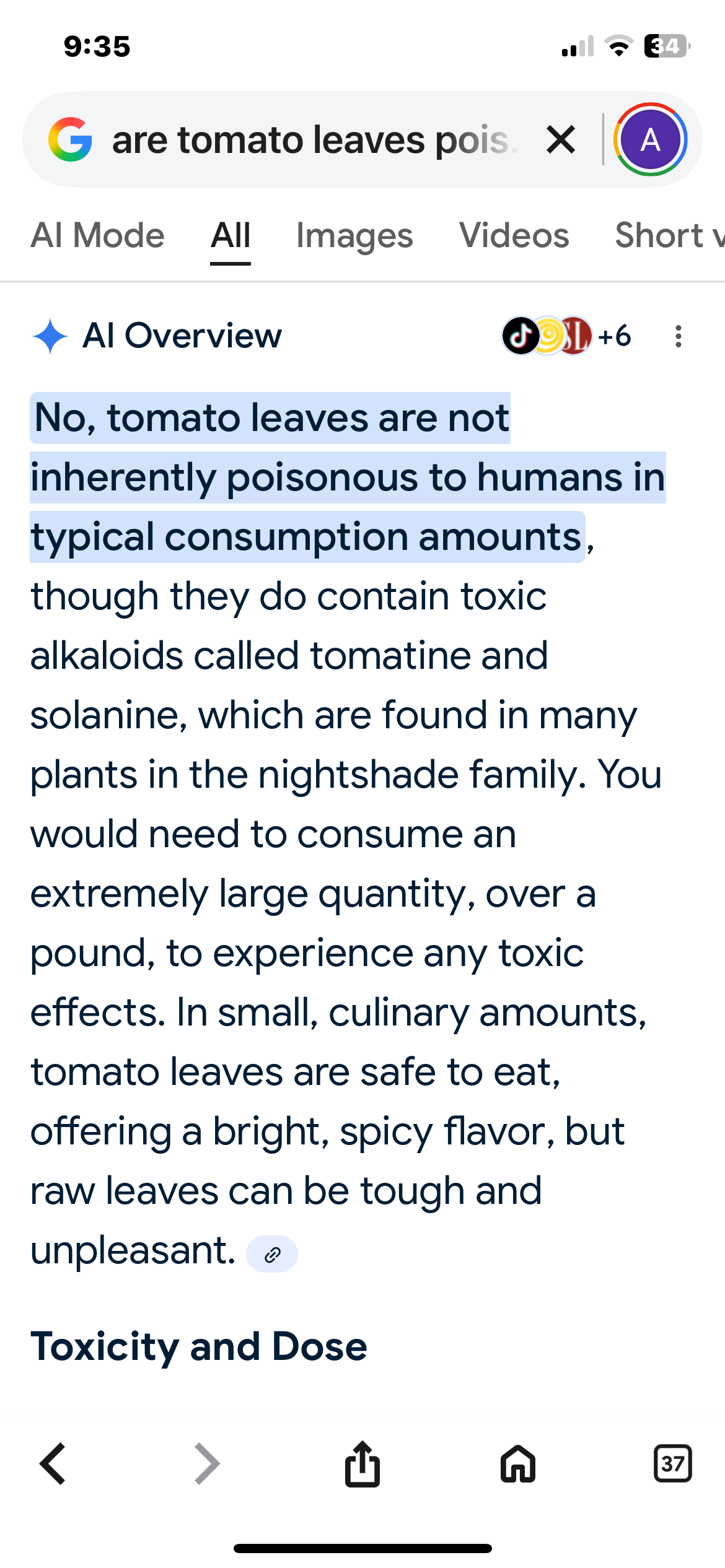There’s more to it, than what Siri has to say. I just looked up tomato leaves:Botch said: