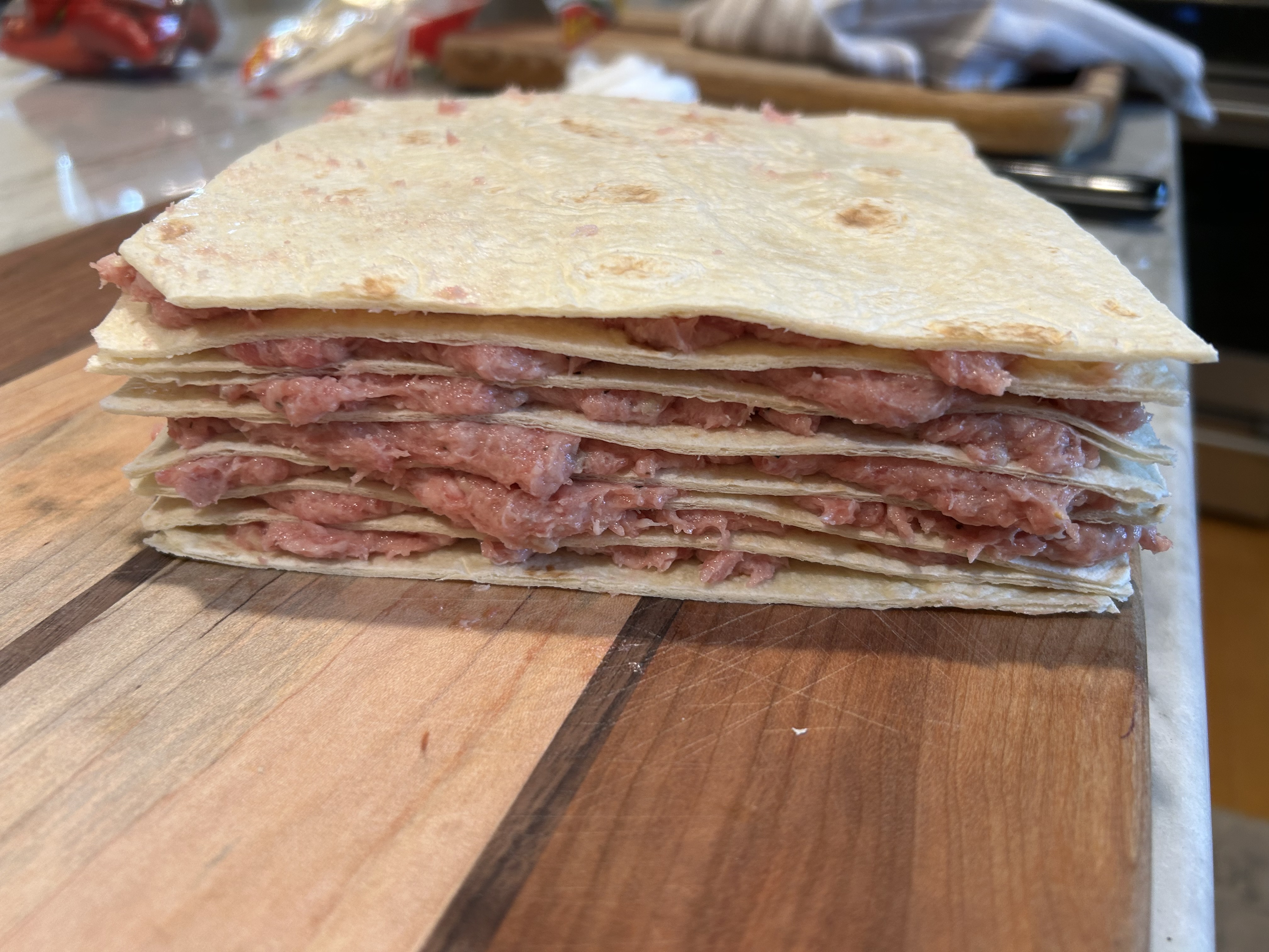 I used a lb of frozen ground turkey that's been in the freezer only a couple months, it had kind've'a "skin" on it under the tube wrapper, but it smelled okay.