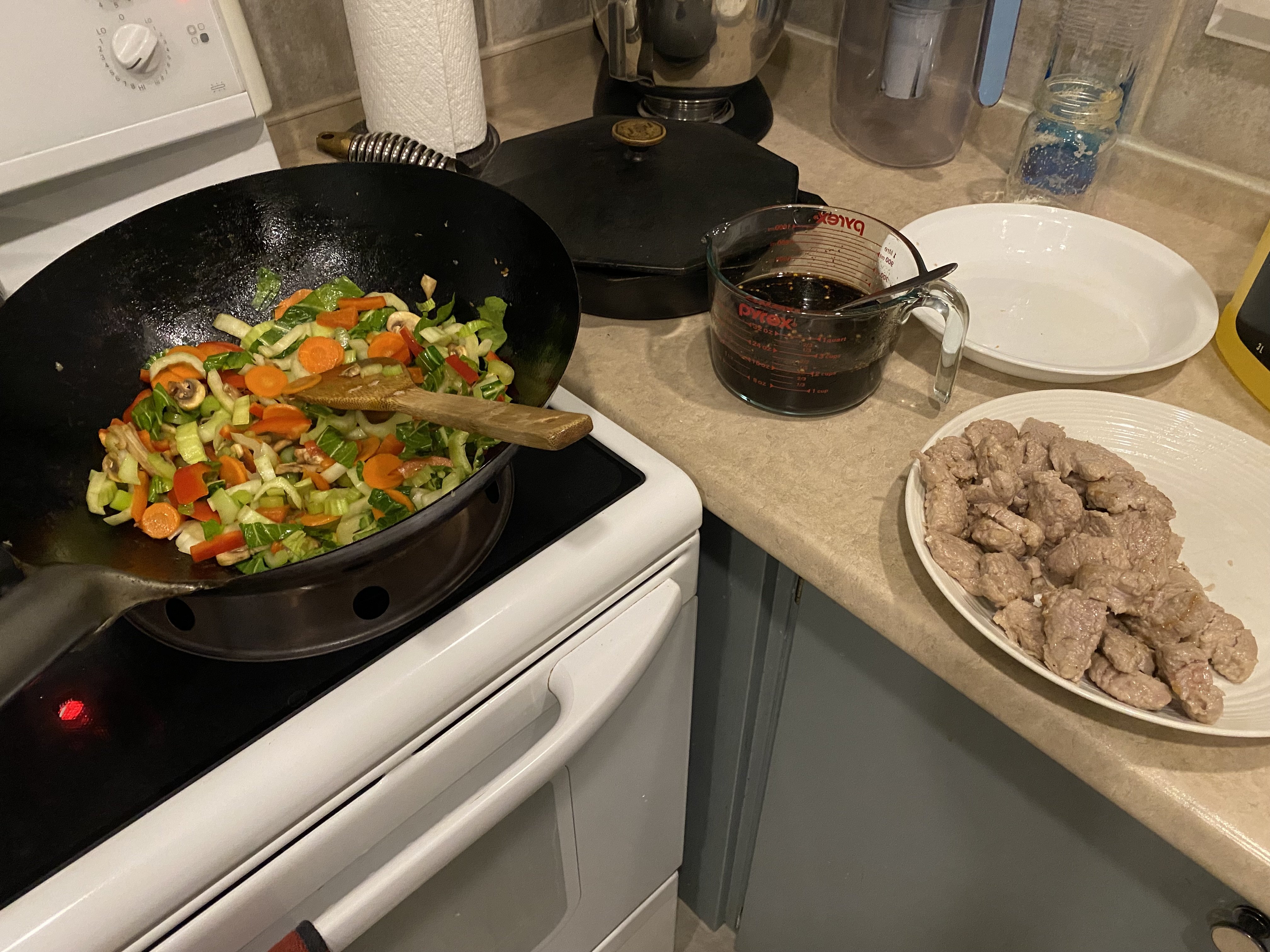 Made a Mongolian pork tenderloin stir fry for the fam. No plated pics.