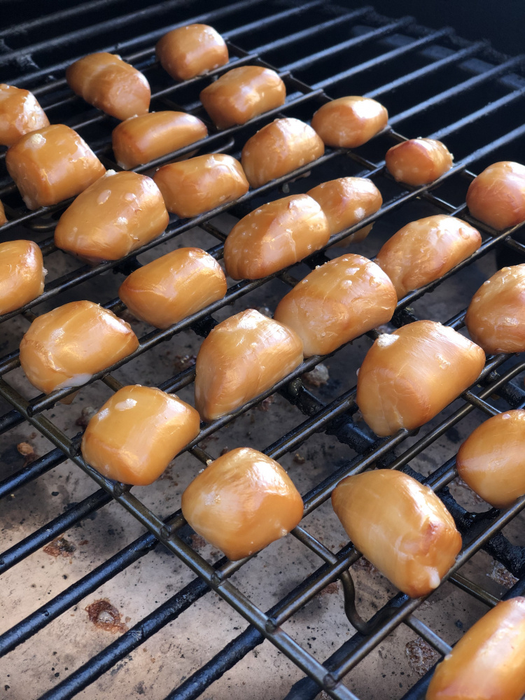 • Scallops are delicate. I’d be afraid that slow hot smoking would overcook.