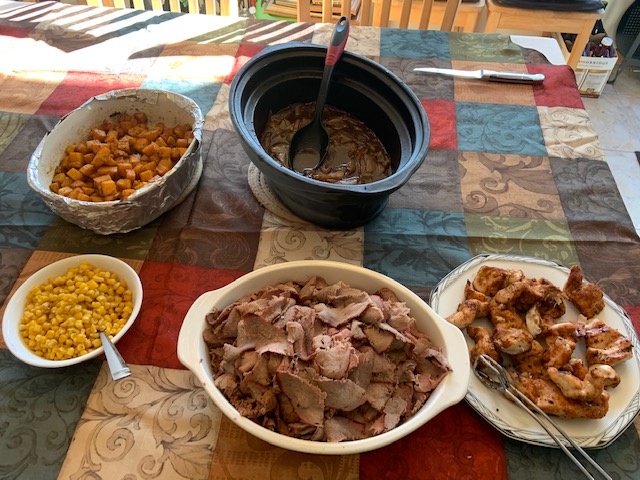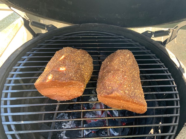 Today was Christmas dinner with one of my sons, D-I-L & four grandkids...the much better half wanted thin sliced beef & beefy onions...had about four pounds of eye of round that had marinated overnight in red wine, Worcestershire sauce, soy sauce & red wine vinegar...added a heavy coat of Dizzy Pig Raising the Steak rub & onto the Egg at about 375 direct...