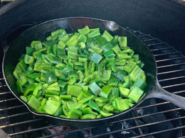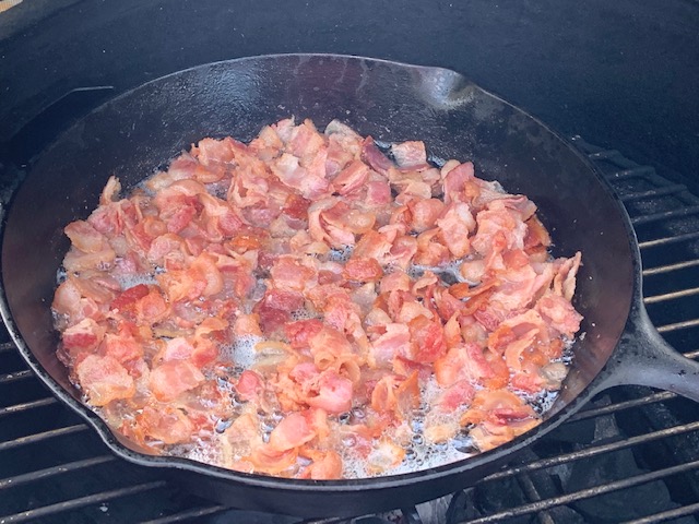 Drain off most of the bacon grease & then add the jalapeno pieces to get soft...