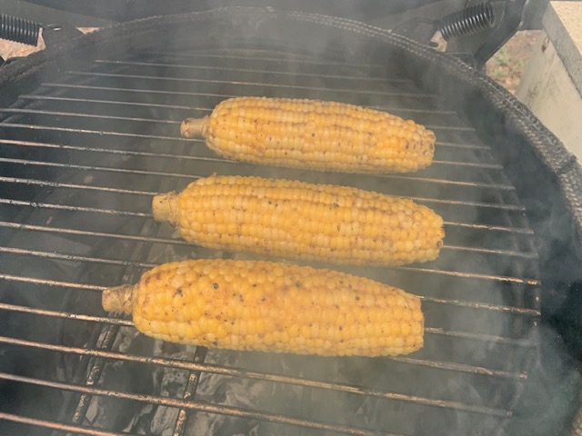 Then removed the pizza stone & put the corn on the cob on the Egg while the ribs rested...these were brushed with melted butter with some DP Shaking the Tree...