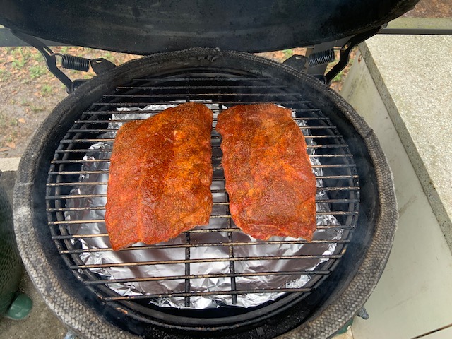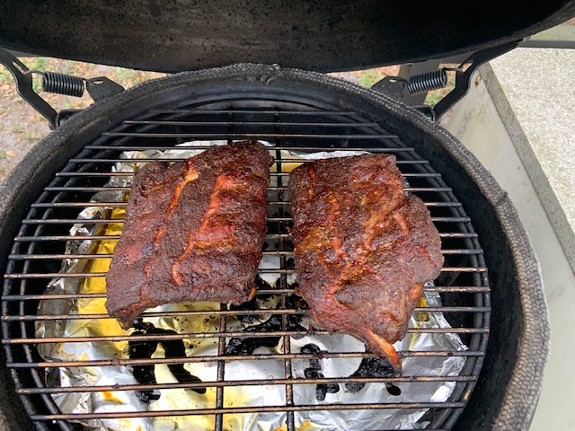 Just let the ribs ride for about 4 hours before ready to take off the Egg...