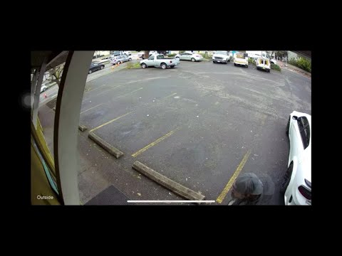 Guy stepped into a liquor store right before an errant concrete saw blade flies in.