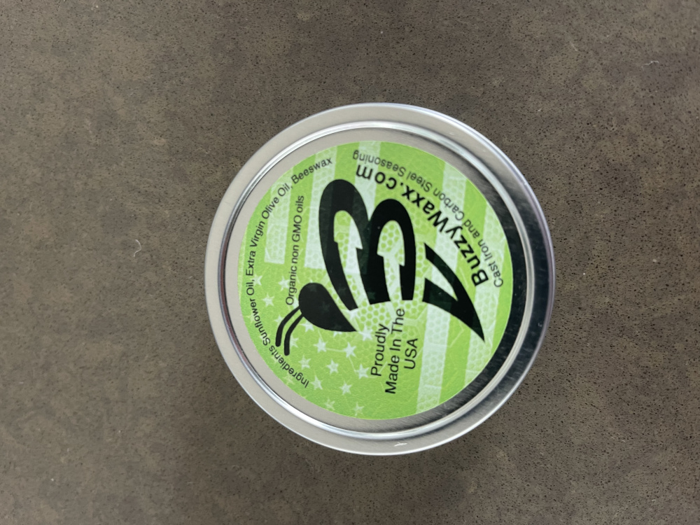 pan that is seasoned and you can see where it takes your seasoning off. I have a plastic scraper I use then but if its seasoned good the plastic scraper will be enough. I got this wax recently and its the best thing I have ever found for seasoning. Watch their youtube video for instruction but you put a layer on with a rag then wipe it off with a fresh paper towel then put it in the oven upside down for an hour at 500 then let it cool in the oven. You need to do that 3 times but it works great. This little tub will season a pan probably 30 times for $12.
