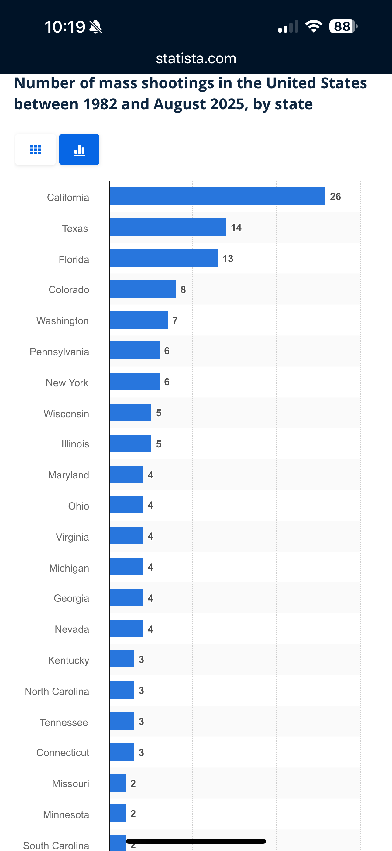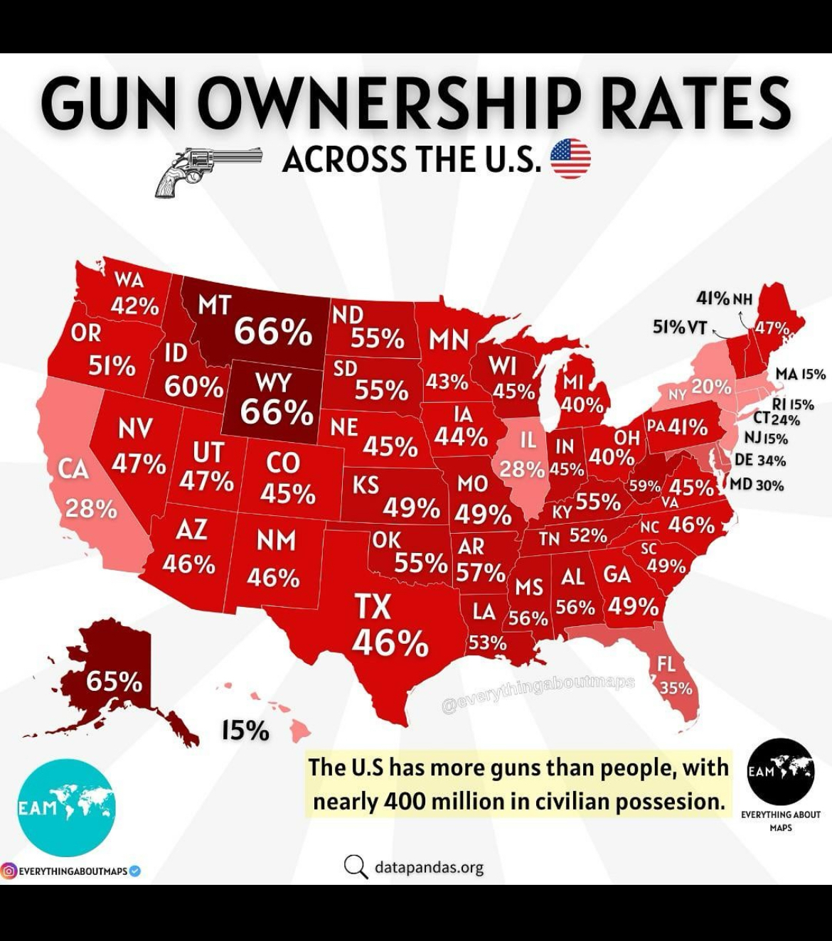 It seems California has a lower percentage of gun ownership yet ranks at the top in mass shootings. Not really surprising since they have the larger cities. It goes to reason that it’s largely dependent on who has the guns rather than how many guns a state has. On a separate note, I saw a list of these shootings and there’s a trend of transgender people that are doing this. I’m rather surprised by this but maybe it’s a mental health issue with this group. It can’t be a coincidence. -