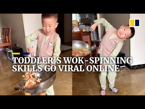Can't properly toss with a ring handled wok? Tell it to this little chef